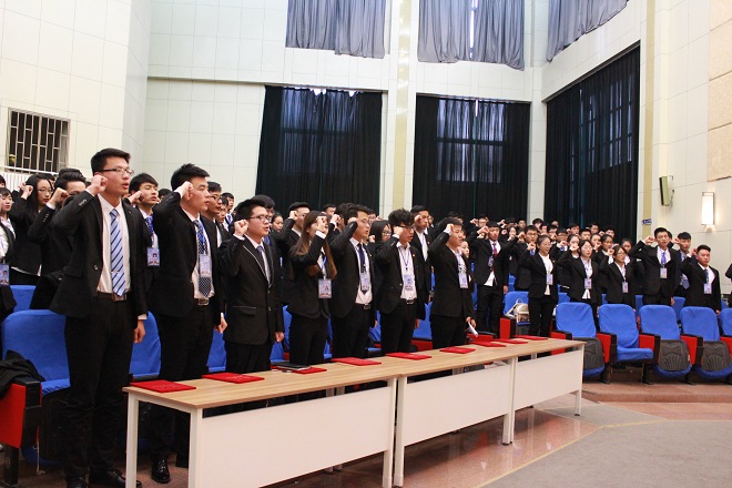 大会宣读了《潍坊学院大学生自律委员会章程》。宣布了新一届自律委组成人员名单,并为副部长级以上颁发了聘书。第四届和第五届大学生自律委员会主席分别发表了总结发言与就职演说。新一届大学生自律委员会全体成员在主席王一鸣的带领下进行了庄严宣誓。最后学生工作处张付功副处长发表重要讲话。张副处长分别从如何正确理解自律委学生干部的角色定位;如何熟练掌握工作技巧;如何树立自律委干部的整体形象;如何切实发挥学生干部的担当作用这四个方面对大学生自律委员会全体成员提出了严格要求和殷切期望。会后,自律委各部门进行了合影留念。