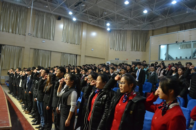 大会宣布了潍坊学院第五届大学生网络传媒中心成员名单,为新一届主席团及各部门部长颁发了任职聘书,表彰了第四届大学生网络传媒中心优秀工作者,第四届大学生网络传媒中心主任李志鹏、第五届大学生网络传媒中心总编王安琪分别发表了离职报告和述职报告,最后,第五届大学生网络传媒中心全体成员在总编王安琪的带领下进行了宣誓。会后,传媒中心各部门进行合影留念。