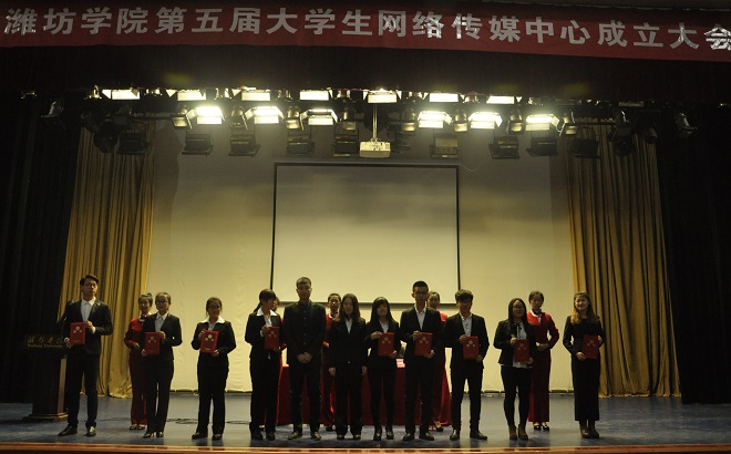 12月6日晚,潍坊学院第五届大学生网络传媒中心成立大会在图书馆报告厅举行。各二级学院、弘德书院分管新闻宣传工作的主席以及网络传媒中心的全体成员参加了本次会议。学生工作处学生教育科边洪燕、朗斌老师出席。