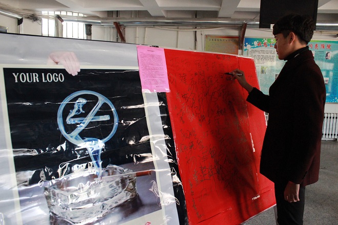 举安全之盾,防事故之患。11月25日,学校二餐前由大学生自律委员会承办的宣讲签名活动引起同学们的注意。张贴主题鲜明的海报“无烟世界,清新一片”、可爱的玩偶人发放安全小册子等一些特色活动,吸引同学们驻足观看,并在横幅上写下自己的名字,做出拒绝吸烟的承诺。“我们通过举办这些有趣的活动,以轻松娱乐的方式让同学们认识到宿舍防火灾的重要性,效果比单纯下发通知排查宿舍强得多。”学生工作处副处长张付功在活动现场说。