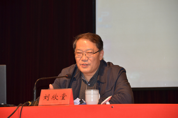 在报告会上,刘欣堂从国际形势、国内形势、高等教育发展的形势及思想政治工作面临的形势四个方面,剖析了当前高校思想政治工作面临的新形势,提出准确把握高校思想政治工作的四大任务,即坚持不懈传播马克思主义理论、坚持不懈培育和践行社会主义核心价值观、坚持不懈促进高校和谐稳定、坚持不懈培育优良的校风学风。他认为,高校思想政治工作要贯彻落实创新、协调、绿色、开放、共享五大新的发展理念,把握“一个中心、三个着眼于”的原则加强思想政治工作的研究,始终坚持同党中央保持高度一致、围绕中心顾大局、以学生为中心的工作导向,时刻保持政治清醒和坚定,高扬敢于担当的精神品格,科学统筹,与时俱进,开拓创新。
