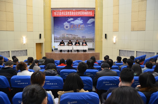 3月10日下午,根据工作安排,学习习总书记高校思政会议讲话精神第二阶段---集中研讨会在行政楼一楼报告厅召开。各二级学院书院分管学生工作的负责同志、全校专兼职辅导员、学生工作处有关同志参加了会议。副校长王清明出席会议并作讲话。