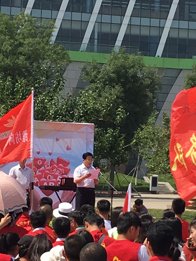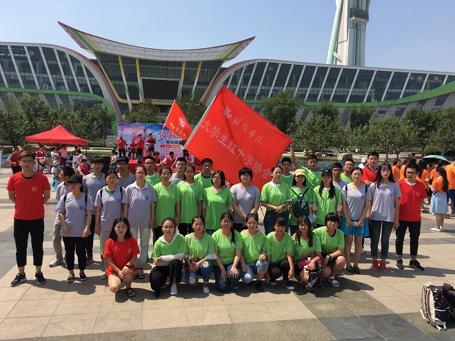 今年的6月14日是第14个“世界献血者日”。上午9点,由潍坊市精神文明建设委员会办公室、潍坊市献血工作委员会办公室等单位举办的大型宣传活动在市人民广场举行。我校弘德书院化学专业的30余名同学和学校大学生红十字协会部分同学在弘德书院学生工作办公室主任王伦刚老师的带领下参加此次活动。同学们统一着装,积极配合工作人员进行无偿献血宣传工作,进行了一次很好的爱心传递社会实践活动。