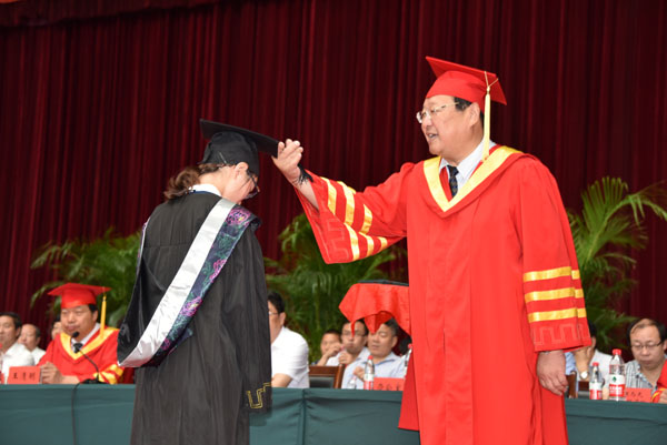 校长冯滨鲁为毕业生代表授予学位证书。副校长王清明宣读颁发毕业证书、授予学士学位的决定。副校长朱猷武宣布关于表彰2017届优秀毕业生的通报。毕业典礼由副校长丁子信主持。学校领导马茜华、赵光强、王旭升出席典礼。各单位、各部门行政主要负责人,2017届全体毕业生及相关人员参加了毕业典礼。