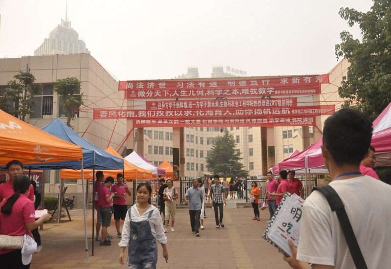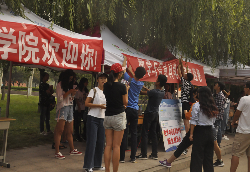 为做好迎新工作,各二级学院组织了迎新团队,在学校南门、北门设立新生报到处,帮助新生们完成注册,领取生活物品,以及入住宿舍等工作。从清晨开始,就有一些家长和新生陆陆续续的到来,迎新人员热情的接待每一位新生,并积极的接过他们沉重的行李,然后指引他们完成注册,带他们领取宿舍钥匙,宿舍用品以及做好宿舍入住工作。在去往宿舍的路上,迎新人员、家长和新生们谈笑风生,来来回回的接送工作也并没有使迎新人员们懈怠于自己的工作,依旧不厌其烦的为每一位新生解答他们的各种疑问,热心的欢迎每一位新生的到来,使他们能够更快的融入我们这个大家庭并感受到在这儿的温馨。