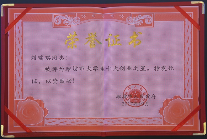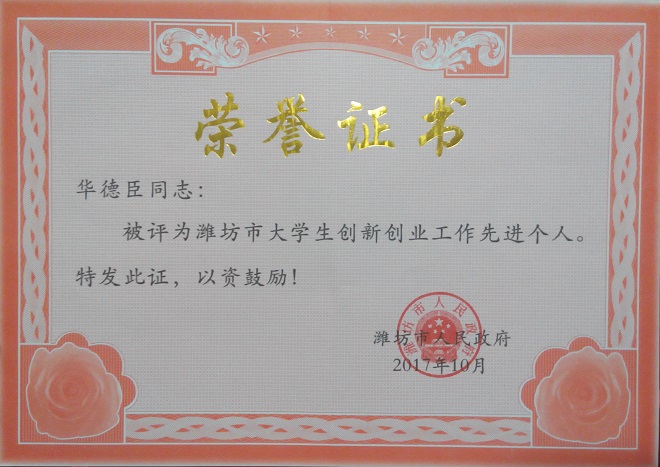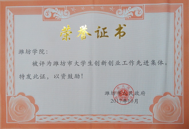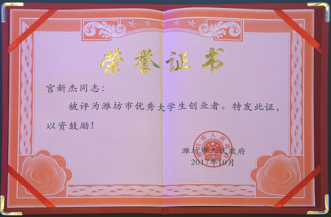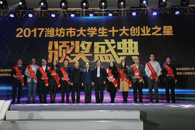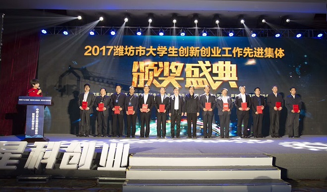 大会对2017年潍坊市大学生创新创业工作先进集体、先进个人和大学生创新创业大赛获奖者,潍坊市大学生创业示范平台和潍坊市大学生农村创业特色示范平台进行了表彰。其中,我校荣获“潍坊市大学生创新创业工作先进集体”称号,学生工作处大学生创新创业教育管理中心副主任华德臣荣获“潍坊市大学生创新创业工作先进个人”称号,入驻我校大学生创业孵化基地的创业项目法人、潍坊凯瑞文化传媒有限公司总经理刘瑞琪被授予“潍坊市大学生十大创业之星”称号并获3万元创新创业奖金,入驻我校大学生创业孵化基地的创业项目、青州泓景花卉苗木有限公司负责人宫新杰被授予“潍坊市优秀大学生创业者”称号并获1万元创新创业奖金。