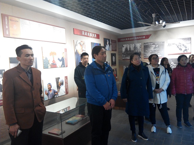 在岱崮三线军工文化基地,全体党员在讲解员的带领下,通过一组组老照片、一处处场景还原,仿佛带大家回到20世纪60年代,来自全国各地的优秀工程师、高技术人才,响应国家“深挖洞、广积粮、不称霸”、“备战备荒为人民”和“靠山、分散、隐蔽” 的战略方针荟聚于此,为祖国军工事业和岱崮早期建设挥洒青春积极开展三线建设的场景。