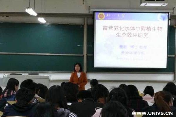 本次报告会由临沂大学资源环境学院16级地理科学2班的马天一主持,报告伊始,她向同学们简单的介绍了董彬教授。董彬教授,毕业于南京师范大学环境地理学博士,主要研究领域是湿地生态,生物地球化学循环。随后,报告正式开始,首先,董彬教授从生态学研究历程引出此次报告的主题――富营养化水体中附植生物生态效应研究。接下来,董教授从水体富营养化及主要生态修复技术、附植生物结构组成、附植生物功能、主要影响因素、培养学生科学意识和创新能力情况五个方面为同学们展开讲解。报告中,董教授重点向同学们介绍了水体富营养化的危害,还具体介绍了各种水生植物对生态修复的重要性。在报告会最后,董教授认真耐心地解答了同学们提出的疑问。至此,报告会顺利结束。