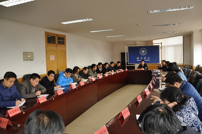 11月29日,学校在行政楼东会议室召开学生工作会议,部署学习十九大系列活动、冬季公寓安全检查、学风建设、学生保险等工作。副校长王清明主持会议,学生处负责人、各学院、书院分管学生工作负责人参加了会议。