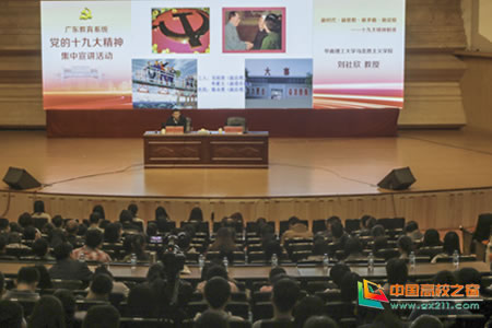 为了帮助和促进广大师生进一步学习领会党的十九大精神,12月8日,由广东省委教育工委主办的广东教育系统党的十九大精神集中宣讲活动在肇庆学院举行。全省教育系统党的十九大精神集中宣讲团成员、华南理工大学马克思主义学院院长刘社欣教授担任主讲人,校党委副书记叶峥嵘主持,来自全校各级党组织的党员干部、师生代表400余人出席。