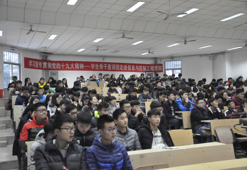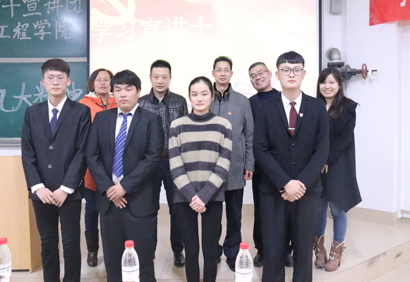 为进一步学习宣传党的十九大精神,发挥学生骨干的引领作用,12月5日下午,由学生工作处相关负责人边洪燕、郎斌、朱万山和钱雨带队的学生骨干宣讲团的四个小组分别走进化学化工与环境工程学院、信息与控制工程学院、生物与农业工程学院以及机电与车辆工程学院进行宣讲。