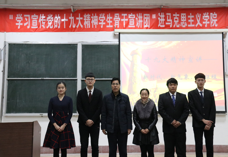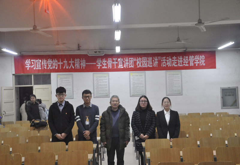 12月12日下午,由学生工作处相关负责人带队的学生骨干宣讲团的4个小组继续走进马克思主义学院、经济管理学院、法学院以及历史文化与旅游学院进行宣讲。