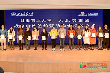 12月18日上午,甘肃农业大学与大北农集团战略合作签约暨大北农助学金发放仪式在学校逸夫科技馆4号会议室举行。大北农集团常务副总裁宋维平,校党委书记张俊宗,校长赵兴绪出席签约仪式。签约仪式由副校长毕阳主持。