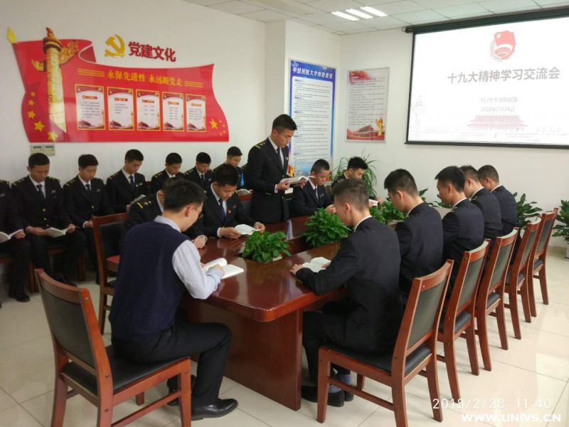 2月28日,中国民航大学新学期上课第一天,师生除了在课堂上进行头脑风暴、碰撞知识火花,在课堂下也会对形势政策进行思辨,开启新学期思想政治教育第一课。飞行技术学院团委组织青年学习会成员举办学习十九大精神交流会,就假期“学习十九大,宣讲十九大”的所见所闻、所思所想展开讨论,推动学习贯彻党的十九大精神在飞行学生中的再聚焦、再加温、再深化。