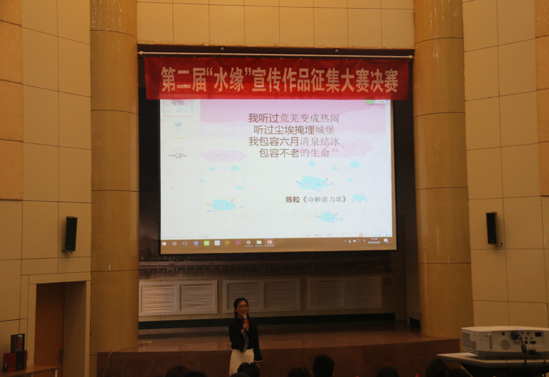 为弘扬节水意识,积极响应“实施国家节水行动,建设节水型社会”的号召,3月29日下午,由潍坊水利局倡导、共青团潍坊学院委员会发起,生物与农业工程学院团总支、学生会承办的以“护绿水青山,建设节水型社会”为主题的第二届“水缘”节水宣传作品征集大赛决赛在行政楼报告厅举办。出席此次活动的评审嘉宾有团委科技创新部部长李静老师,生物与农业工程学院团总支副书记孙海燕老师,校青志联主席李潘啸、潘雯静,以及来自美术学院的专业评审团队。