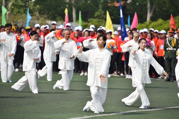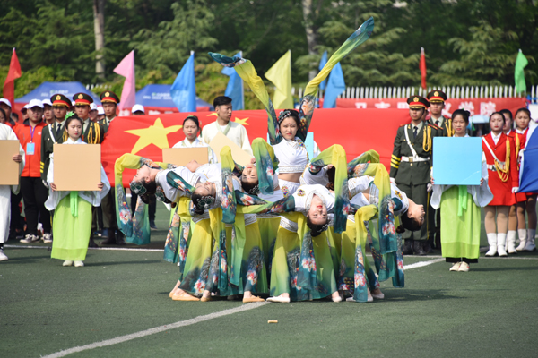 各二级学院的方阵表演是每年运动会开幕式的重要看点。8时整,伴随着激荡高昂的运动员进行曲,国旗、院旗护卫队、花束方队、彩旗方队、裁判员方队作为先导方阵进入会场,开幕式正式拉开帷幕。21支二级学院代表队的方阵表演,围绕“博学的青春最闪亮,争树优良学风校风”的主题,展现出各学院的专业特色,形式新颖,彰显当代大学生的青春活力。体育学院的舞狮表演,点燃全场氛围。队员们在《厉害了,我的国》的旋律下变化着队形舞动,展现出青年人的活力与激情。文学与新闻传播学院的鼓上京剧表演,传承传统文化,将国粹融入舞蹈,在红白两色服饰之下,展示着古典文化之魅力。计算机工程学院队形呈现“IT”字样,用横幅拼成五星红旗,一条条横幅记录的是他们所取得的瞩目成绩,让观众们都为之称赞。特教幼教师范学院的民族舞表演,绿色的草坪仿佛成了宽广的草原,曼妙的身姿,悠扬的乐曲,一场草原盛宴引人入胜。不拘一格的表演,展现出了潍院学子的蓬勃朝气。由教师组成的太极拳表演代表队的表演,刚柔相济,一招一式都透露着威严的气势,展现着教职工的英姿和风采,赢得观众阵阵的掌声和喝彩。