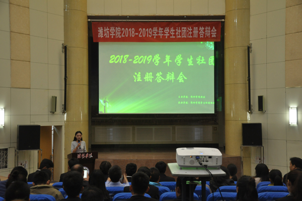 近日,学校团委、学生社团联合会在行政楼一楼报告厅举行潍坊学院2018-2019学年校级学生社团注册答辩会。学校党委副书记王清明出席答辩会。