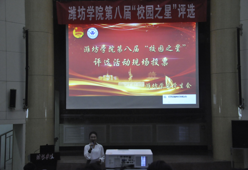 为深入贯彻落实习近平新时代中国特色社会主义思想,党的十九大和团十八大精神以及学校第三次党代会精神,充分发挥我校青年学生自强不息、艰苦奋斗的榜样模范作用,激励广大团员青年始终保持积极的人生态度、养成良好的道德品质、追求健康的生活情趣,帮助学生树立牢固信念,鼓励汲取知识教训,点燃激情青春,提供前进动力。11月22日,潍坊学院校学生会在行政楼报告厅举行了潍坊学院第八届“校园之星”评选活动。出席本次活动的老师是潍坊学院团委社团工作部副部长朱军老师。参加本次活动的还有潍坊学院学生会主席团,以及由各二级学院学生会主席和其他学生代表组成的校级评审团。