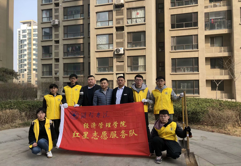 为了积极响应团总支“青春志愿行,奉献新时代”学雷锋志愿服务月的活动安排,弘扬“全心全意为人民服务”的雷锋精神,潍坊学院大学生志愿服务队开展志愿服务活动。2019年3月10日上午8:30,经济管理学院红星志愿服务队在孙宗争同学的带领下步行来到翰林小区进行植树活动。