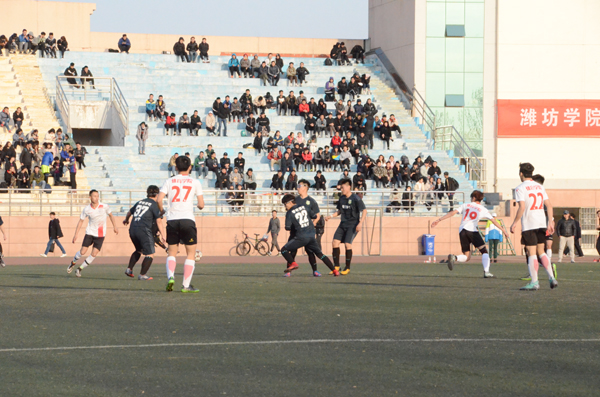 本网讯 3月11日,由校体育运动委员会主办,学生工作处、团委、体育学院承办的,我校第五届大学生足球联赛开赛。副校长赵光强出席开幕式,并宣布开赛。