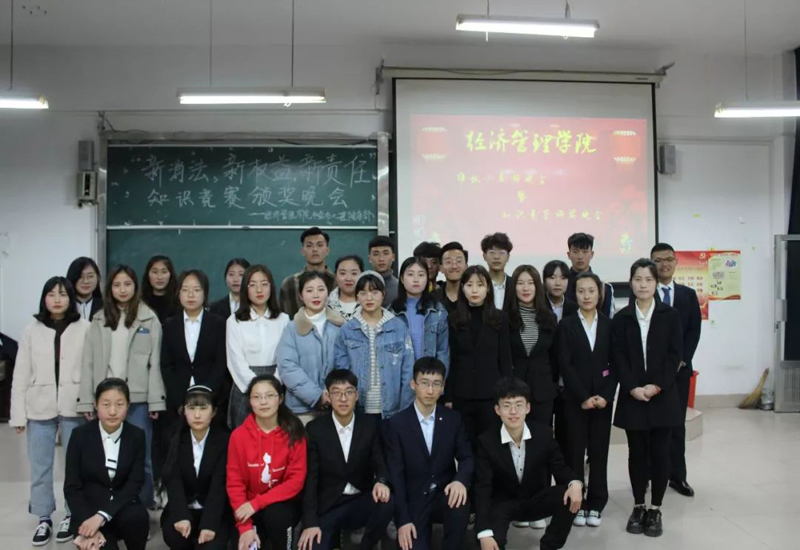 为了增强大学生对于自身消费权益的维护意识,提倡文明消费的方式。3月14日晚7点,由经济管理学院权益与心理健康部组织的“新消法,新权益,新责任”颁奖典礼正式举行。出席本次活动的有: 经济管理学院团总支副书记于敏、喀蔚宇老师、崔小华老师以及经济管理学院学生会干部和17、18级学生。