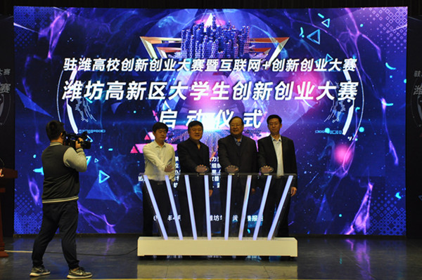 本网讯 4月17日上午,驻潍高校创新创业大赛暨互联网+创新创业大赛、潍坊高新区大学生创新创业大赛启动仪式在我校闻韶楼报告厅举行。潍坊市人社局领导、高新区领导、潍坊学院领导、驻潍高校大学生创业负责人以及光电园、生物园、软件园、蓝色智谷主要负责人出席此次启动仪式。