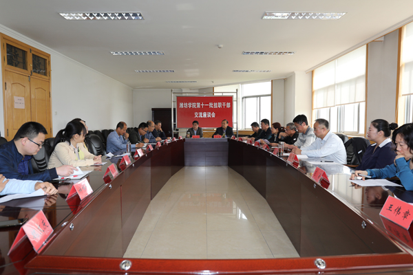 5月10日,学校召开第十一批挂职干部交流座谈会。党委书记孙文亮强调,过去一年,学校在党建和思想政治、教育教学、科研创新工作等方面全面起势,挂职干部要更有针对性地在实践中学习锻炼、增长才干,打造潍坊学院的良好品牌形象。校长冯滨鲁主持座谈会。党委组织部负责同志,18名第十一批挂职干部参加了座谈会。
