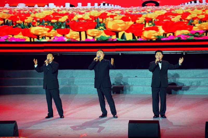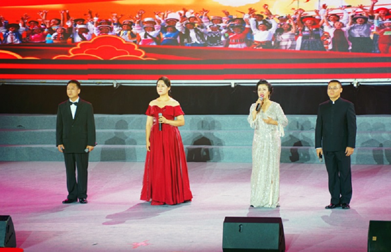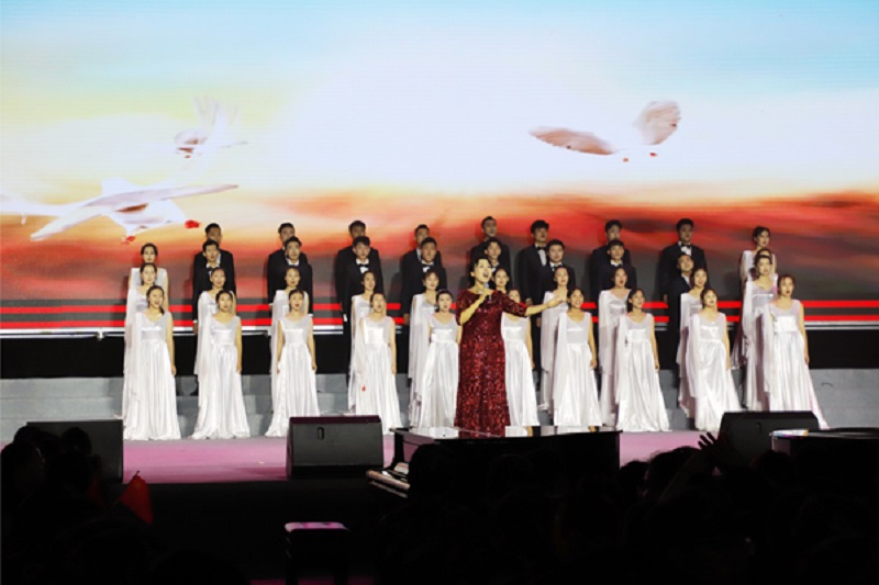 晚会在民乐合奏歌曲《我的祖国》中拉开帷幕,音乐学院合唱团用饱含深情的演唱,表达了对祖国母亲的无限热爱;诗朗诵《可爱的中国》抒发了共产党员的赤子情怀和远大抱负,勾起了在场观众对革命先烈的深切缅怀之情;歌曲《把一切献给党》表达了一名共产党员终身入党的坚定决心;《北京颂歌》带着历史的温度,表达了人们最醇厚的革命热情和最纯真的红色信仰;同学们以激荡而充满力量的舞姿在《红旗颂》中展现了不屈不挠和勇往直前的民族精神;老教授合唱团《天路》表达了退休老教师对祖国的深切情意;《不忘初心》《祖国万岁》《在灿烂的阳光下》一曲曲红色歌曲唱响了青年一代筑梦未来的主旋律,充分表达了我校师生爱党爱国爱校的家国情怀;《追寻》《春天的故事》《红旗飘飘》《好儿好女好江山》《今天是你的生日,我的中国》等一首首熟悉的旋律赢得了观众的阵阵欢呼和喝彩声,现场舞动的国旗和闪光灯汇聚成欢乐的海洋,将晚会的气氛推向了高潮。