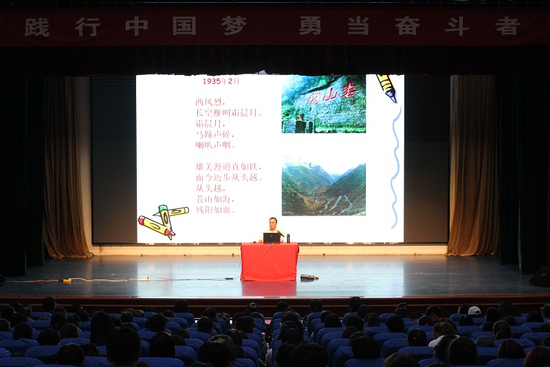 来自文学与新闻传播学院的主讲嘉宾王恒升教授从毛泽东青少年时期诗词所表现出来的革命情怀和远大抱负、井冈山烽火连绵时期的艰苦革命斗争实践、为中国梦奋斗付出的巨大牺牲,用鲜活的语言,解读了毛泽东诗词的深刻思想内涵,带领同学们重温了伟人广阔的胸怀,比天的豪情,伟岸的人格及其深厚的爱国主义情怀。
