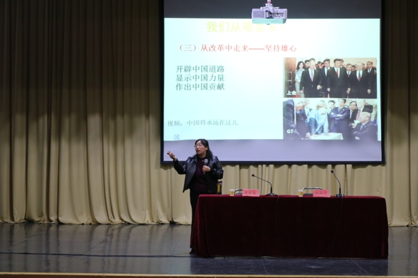 楚爱丽教授以《“三问”初心和使命》为题目,从“历史之问——我们党和国家从哪里来?现实之问——我们现在在哪里?未来之问——我们去往哪里?”三个方面分析了我们党的初心和使命,整场报告会以习近平新时代中国特色社会主义思想为指导,结合党史、名人事迹,旁征博引、娓娓道来,将共产党员守初心、担使命的重大意义作了生动而又深刻的阐释。