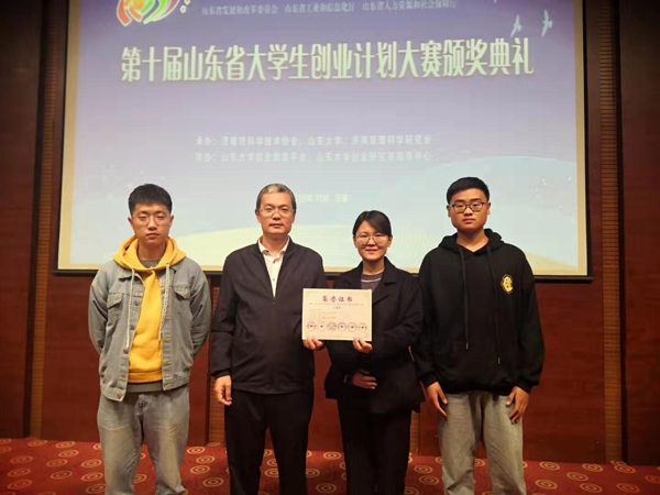11月09日上午,第十届山东省大学生创业计划大赛颁奖典礼在山东大学中心校区知新楼C座思源报告厅隆重举行。出席本次颁奖典礼的有各学校获奖团队代表及优秀指导老师,我校由计算机工程学院学生工作办公室主任高连宏和学校大学生创新创业教育管理中心负责人王浩老师带队,张传坤、刘柏林为代表的鸣人创新创业团队参加。