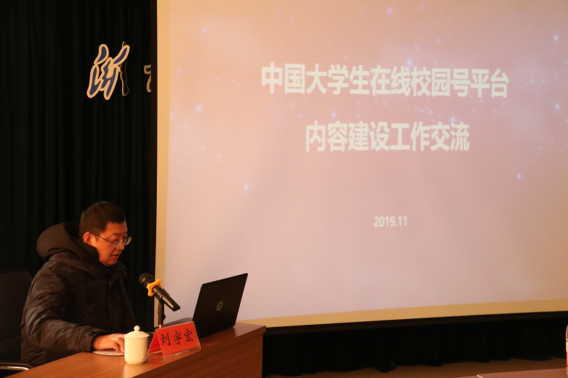 刘宇宏老师围绕大学生在线建设宗旨,机构设置、各类赛事活动以及品牌文化等内容向与会人员介绍中国大学生在线平台。随后以关于校园号、申请入驻、投稿流程、征稿栏目四大部分讲解中国大学生在线“校园号建设工作”如何展开,并针对一些需要重点注意的事项进行了详细解说。进一步说明了校园号开设的便捷功能,将更有利于中国大学生在线和校园网通站之间各项工作的开展,也期待在场同学能尽快适应新的运营系统,继续以饱满的工作热情为校园网通站的建设不断努力。