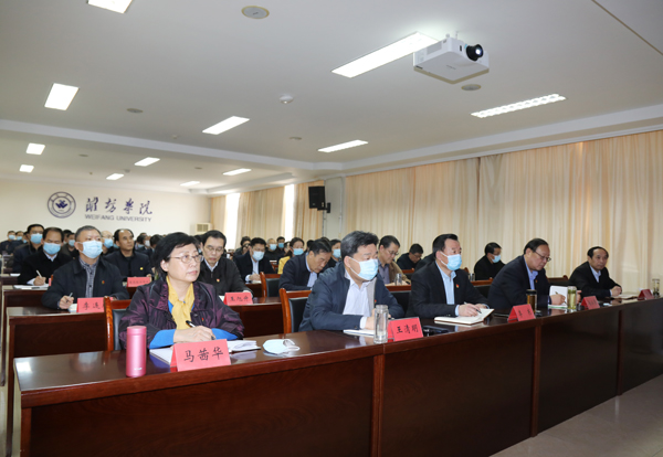 我校在行政楼705会议室设立分会场组织收看学习。全体校领导,各单位、各部门党政主要负责人集中收看了视频会议。