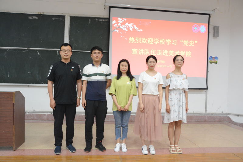 为贯彻落实习近平总书记在党史学习教育动员大会上的重要讲话精神,根据学校工作安排,6月11日晚7:40,学校党史宣讲队伍走进美术学院。马克思主义学院教师刘亚男,信息与控制工程学院辅导员马俊原,物理与光电工程学院学生党员周碧云,历史文化与旅游学院学生党员田宇在109为同学们带来了一场精彩的党史学习教育专题宣讲会。美术学院团总支书记江浩浩主持,全体2020级学生到场聆听。