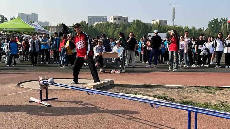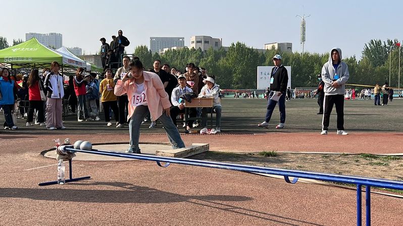 为培养学生强身健体意识,提升身体素质,潍坊学院特此举办第二十届运动会。外国语学院全体同学对此高度重视,积极报名参加各类体育项目。在4月27日上午,冯天雨、王容作为外院铅球项目的运动员在体育场参加比赛。
