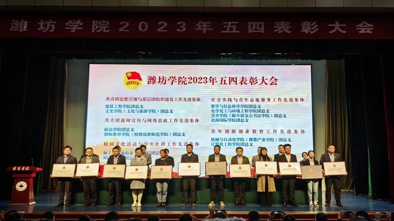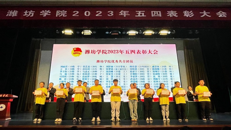 在中国共青团成立101周年和“五四运动”104周年到来之际,为充分发挥青年模范带头作用,激励广大团员青年踔厉奋发、勇毅前行,牢记时代使命,积极投身强国建设,潍坊学院于5月4日在图书馆报告厅隆重举行了五四表彰大会。