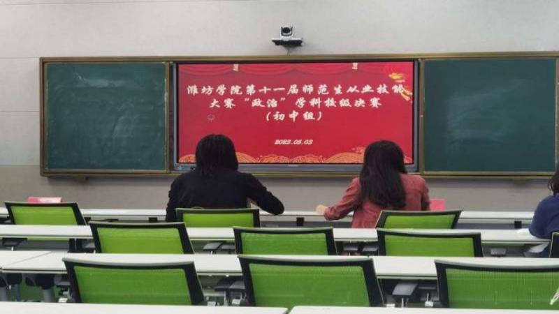 5月3日,潍坊学院第十一届师范类学生从业技能大赛“政治”学科校级决赛正式举行,本次比赛特邀马克思主义学院温洪玉、袁海峰以及政法学院马光川、刘峰、姜作冰和赵静担任评委。2020级思想政治教育专业全体学生参赛,本次比赛分为初中与高中两个学段。