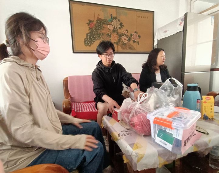 活动开始前,队员们在负责人的安排下登记信息。队员们根据介绍初步了解到了受助儿童的基本情况,并在美生负责人的带领下,携带水果、生活用品等登门慰问受助儿童。