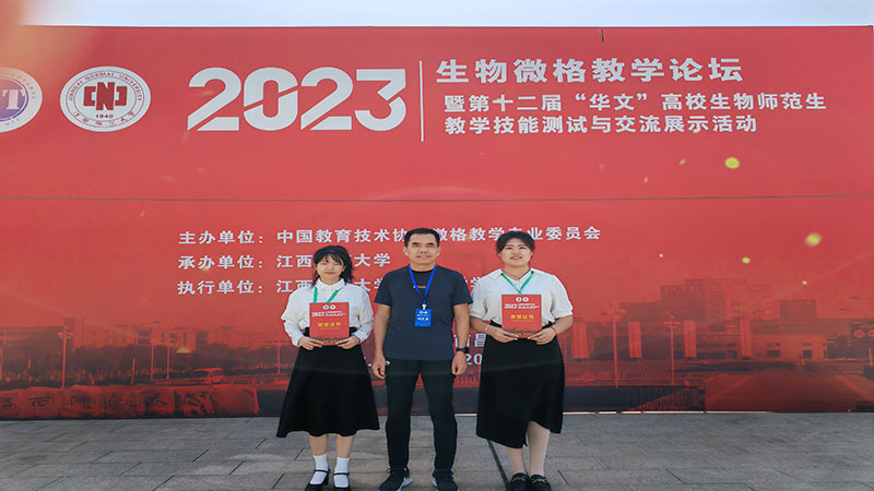 为培养学生的创新意识,促进学科发展,打造“高素质、专业化、创新型”的教师队伍。10月23日,2023年生物微格教学论坛暨第十二届“华文”高校生物师范生教学技能测试与交流展示活动顺利进行,种子与设施农业工程学院积极参与,在校际展示活动中斩获两项大奖。在教学设计测试中,2020级园林专业程琳荣获一等奖、2021级种子科学与工程专业胡于超荣获二等奖。在教学技能设计测试中,程琳同学荣获一等奖、胡于超同学荣获三等奖。本次比赛由曹慧院长、张保仁副院长和范晶晶老师共同指导完成。
