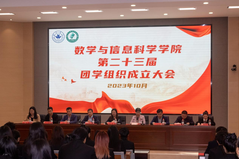 10月21日,数学与信息科学学院第二十三届团学组织成立大会于知新楼4109举行,数学院党总支书记周莹、院长李梅霞、党总支副书记郑栋鹏、数学院副院长车海涛、团总支(学生工作办公室)书记(主任)王鑫莉、正科级组织员张德辉、2023级辅导员郭怡萍、2021级辅导员尉爽华、2020级辅导员宋志鹏,22级、23级班长、团支书以及第二十三届团学组织全体成员参加。