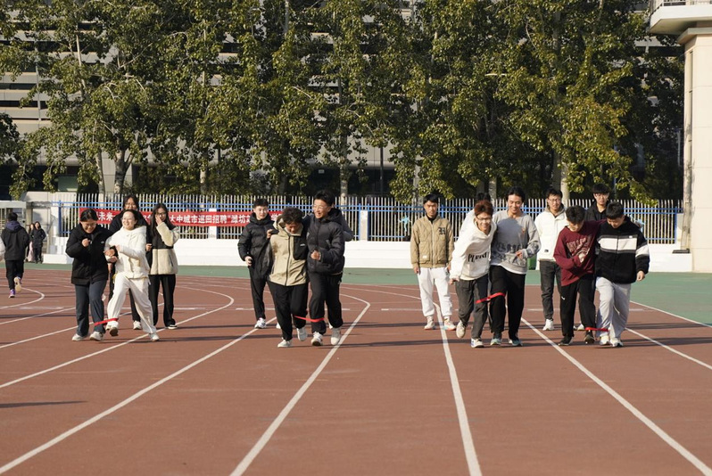 本次活动同学们积极参与,分别进行了蒙眼互打、摸石头过河、两人三足、击鼓颠球等活动。各项活动在同学们的自发组织下有序开展,比赛的氛围也在同学们互相较劲和互相配合中持续升温。虽是寒冷的天气,但现场的气氛热烈而活泼,同学们都踊跃参与,此起彼伏的笑声也感染了运动场上的其他同学,充分展示着新时代大学生积极向上的健康风貌。活动中每个项目都有独特的挑战性,能让大家在运动中提高自身素质,在活动中释放心理压力,在和谐、团结、友爱的运动环境中感受到集体的温暖和情感的喜悦。