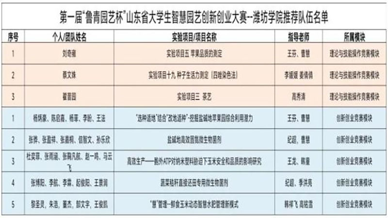 为增强同学们对农学的热爱,培养同学们扎实的专业基础,进一步孵化培育、激发同学们的创造力,培养创新型人才,积极创造良好的人才发展环境。11月22日,种子与设施农业工程学院进行第一届“鲁青园艺杯”山东省大学生智慧园艺创新创业大赛的初次评选,种子与设施农业工程学院党总支书记杨文亭、院长曹慧、李慧老师、刘志坤老师、辅导员李虹老师、辅导员赵文婷老师、学生会部分骨干同学参加。
