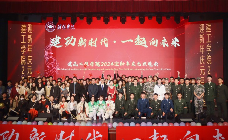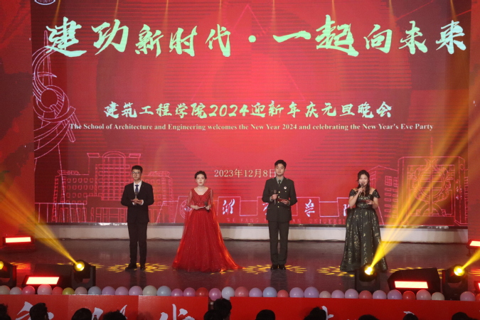 桃李迎元旦,春风赴新程。2024年即将到来,值此佳期,12月8日晚7点,建筑工程学院在图书馆报告厅举办“建功新时代•一起向未来”迎新年庆元旦晚会。校团委书记徐加金,党委宣传部副部长张增森,建筑工程学院班子及学院社会实践基地共建负责人莅临观演,各院级主席团、学生共计480人参加晚会。
