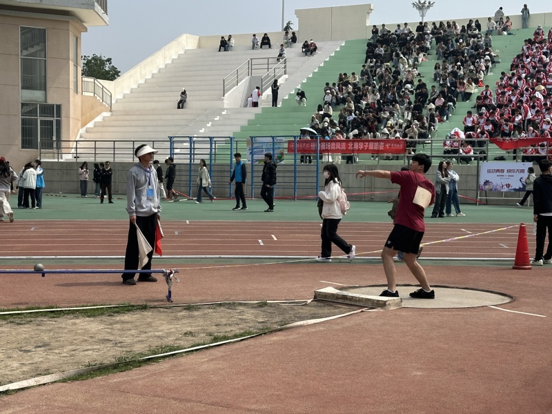 4月29日的潍坊学院第二十一届运动会充满了热血与激情。在这个灿烂的日子里,一项看似静谧实则充满力量的项目——铅球比赛,成为了赛场上的焦点。代表外国语学院参赛的学生组选手有荆烨璇、安涛。