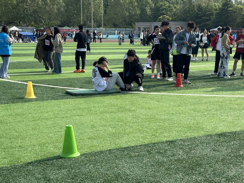 4月29日下午的操场热闹非凡。一场激烈的综合体能比赛正在如火如荼地进行,吸引了众多师生的目光。综合体能比赛是本次运动会的一大亮点,旨在全面检验参赛选手的身体素质、耐力、协调性和反应能力。比赛项目丰富多样,包括俯卧撑、仰卧起坐、立定跳远等多个环节,充分展现了运动员们的综合体能水平。孙嘉应代表外国语学院参赛。