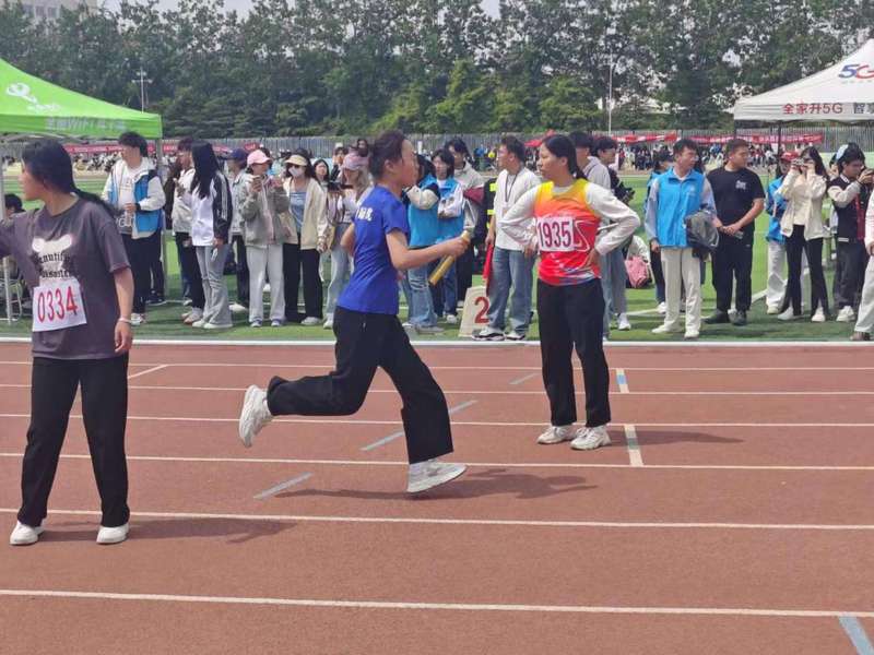 随着才胖枪声响过,第一赛道的运动员如同利箭般向前,操场上的他们热情似火,观众席上的外国语学院学子发出山呼海啸,震耳欲聋般的欢呼声,一潮盖过一潮,声声不绝。四名运动员竭尽所能,发挥出自身的极限,将手中带有温度的接力棒转交给下一名运动员,此时,炽热的心在彼此碰撞。最后冲向终点的时刻,所有人都屏息凝神,静静等待着。近了,更近了,随着终点线被划破,运动员和外院的同学们脸上都洋溢着喜悦的笑容,运动员用他们的尽力奔跑为外院铸就新的辉煌。