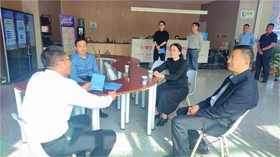 4月28日下午,数学与统计学院党委书记郎益伟、副书记杨颂、辅导员尉爽华到奎文区人社局洽谈交流大学生就业工作,奎文区人社局党组书记、局长吴茵政、副局长马万祥等陪同交流。
