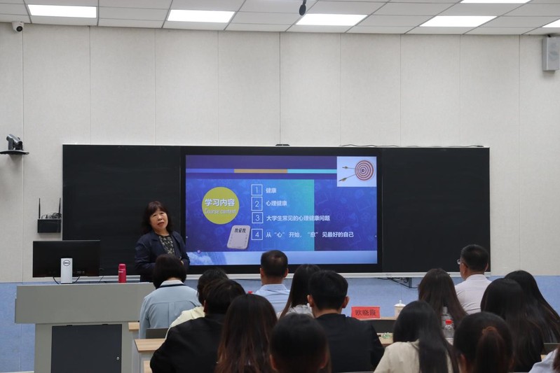 5月9日下午,潍坊学院退休教师、心理学教授欧晓霞应邀在“数苑大讲堂”做心理健康教育报告会。本次报告会由学校离退休工作处、数学与统计学院主办,数学与统计学院心语轩工作坊承办。离退休工作处副处长代宝刚、关工委办公室主任宗青出席,数学与统计学院副书记杨颂、辅导员老师和2023级部分学生参加,学院党委书记郎益伟主持报告会。