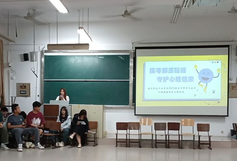 为了进一步加强学生的心理健康教育,帮助学生掌握有效的解压方法,提升心理适应能力。歌尔科技产业学院于5月19日晚在致远楼6206教室成功举办了一场以“探寻解压秘籍,守护心理健康”为主题的班会活动。