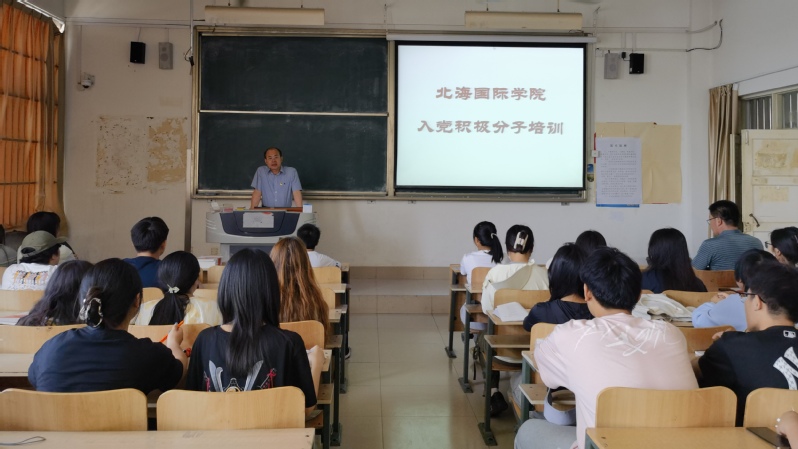 为贯彻落实全面从严治党的要求,进一步提高入党积极分子的党性修养,厚实理论知识,坚定理想信念,端正入党动机,5月23日下午,北海国际学院在7506教室举行2024年上半年入党积极分子培训开班仪式,北海国际学院党委书记任怀坤出席会议,会议由学生党支部书记姚灵忠主持,2024年上半年全体入党积极分子参加。